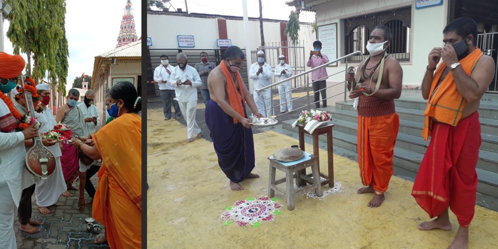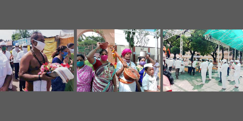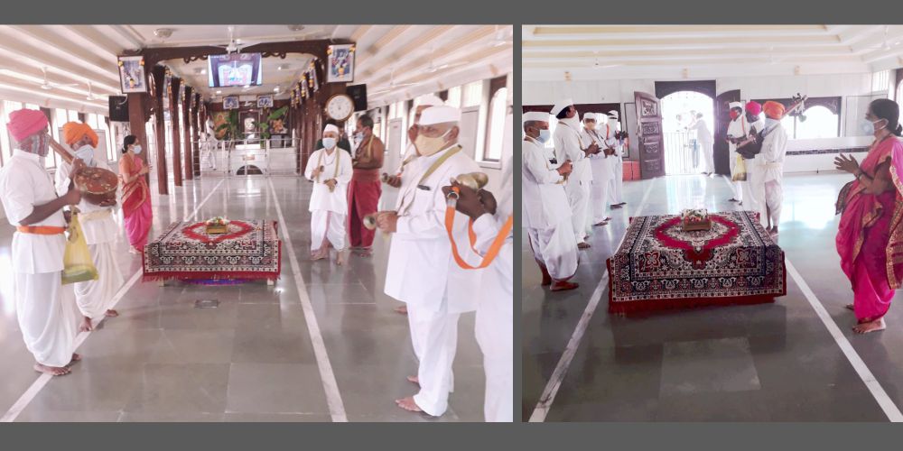ग्रामस्थांबरोबरच्या चर्चेत ठरल्याप्रमाणे पंढरपूर दिंडीचे प्रातिनिधीक स्वरुपात प्रस्थान करण्यासाठी दि 26 जूनला सकाळी ८.३० वाजता काही मोजके वारकरी टाळ मृदुंग विणेसह श्रींच्या समाधीमंदिरा समोरील पटांगणात जमले. वारकऱ्यांच्या व सेवेकरी/ कर्मचाऱ्यांच्या उपस्थितीत श्रींच्या पादुकांची विधीवत पूजा, आरती, अभंग होऊन श्रीमहाराजांच्या व विठ्ठलाच्या जयघोषात हया नाविन्यपूर्ण दिंडीचे प्रस्थान झाले. श्रींच्या पादुकांची जबाबदारी श्री सुधीर जोशी यांच्यावर सोपवली गेली, त्यांच्या सोबत वारकरी मंडळी टाळ, मृदुंग पताका घेऊन मंदिरातून बाहेर पडले अशी ही दिंडी ग्रामप्रदक्षिणा करून श्री राम मंदिरात थोडा वेळ विसावली. तेथील भजन आरती आटपून वेशीपर्यंत जाऊन परत समाधी मंदिरात आली. मंदिरात श्रींच्या पादुका प्रल्हाद इमारतीच्या एका कक्षात ठेवण्यात आल्यावर मिरवणुकीची सांगता करण्यात आली. श्रीच्या पादुकांची पूजा रोज दोनदा होत असे. आषाढी एकादशीस सकाळी ८ वाजता पुन्हा वारकऱ्यांचा मेळा जमवून डॉ गुळवणी काकांच्या उपस्थितीत श्रींची पूजा, आरती व भजन होऊन दिंडी ग्रामप्रदक्षिणेसाठी बाहेर पडली.