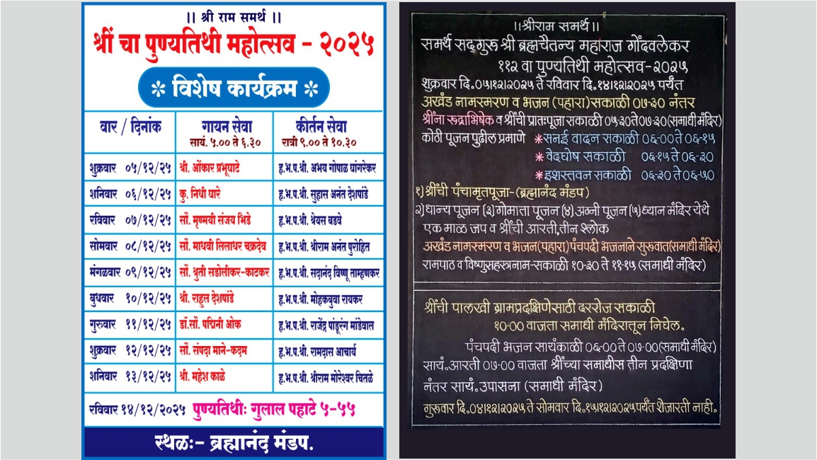 श्रींचा पुण्यतिथी उत्सव दि. ५ डिसेंबर ते १४ डिसेंबर २०२५ या कालावधीत गोंदवले येथे मोठ्या उत्साहाने संपन्न होणार आहे. दरवर्षीप्रमाणे कोठीपूजनाने उत्सवाचा शुभारंभ दि ५ डिसेंबर रोजी होईल.